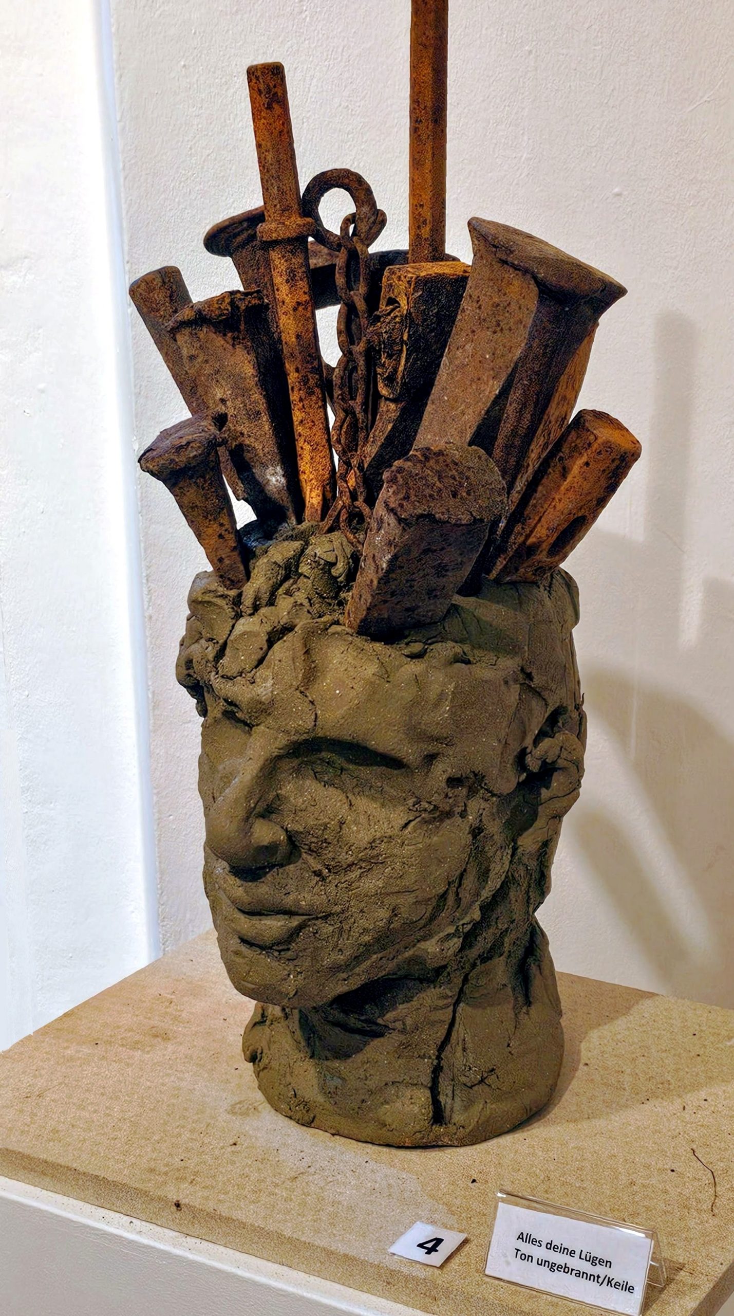 Die gezeigten Arbeiten verbinden schwarz-weiße Zeichnungen in Tinte und Kohle mit plastischen Objekten. Die Zeichnungen wirken dabei wie erste gedankliche Setzungen, während die Skulpturen diese Ideen räumlich weiterführen. Es entsteht ein Dialog zwischen Fläche und Körper, zwischen Idee und Material – zwischen den „Embryonen“ und der sichtbaren Form von Kunst.Die Skulturen sind aus unterschiedlichen Materialien wie Terrakotta oder Bronze.